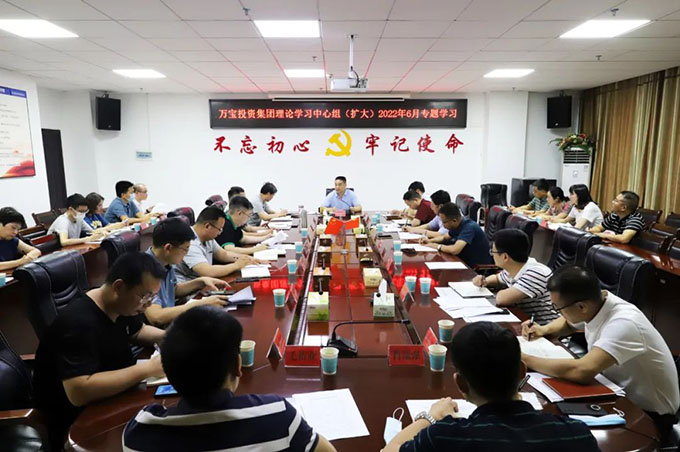 6月29日 ,萬寶投資集團黨委書記、董事長陽文林主持召開理論學(xué)習(xí)中心組(擴大)2022年6月專題學(xué)習(xí)會議,總經(jīng)理徐業(yè)波,監(jiān)事會主席伍岳,副總經(jīng)理謝緯,黨委委員、紀委書記葛旭華,各部室、子公司負責(zé)人以及主管以上全體人員參加。謝緯、葛旭華分別作中心發(fā)言。