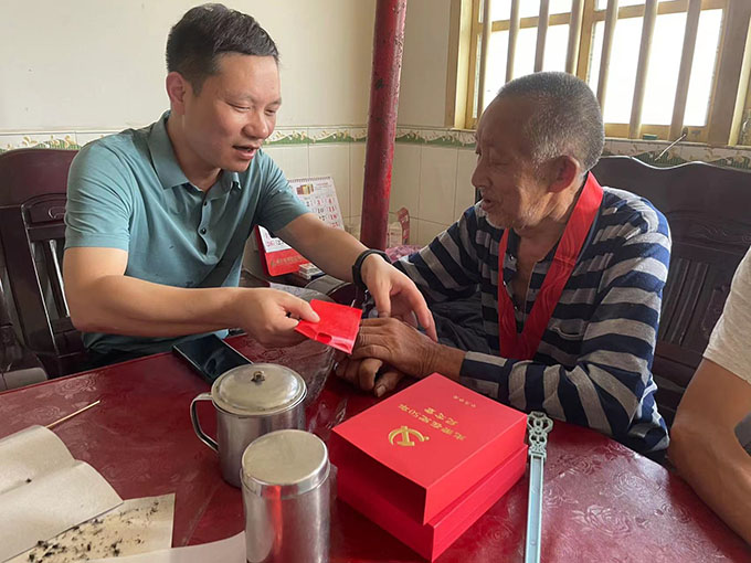 (葛旭華慰問(wèn)“在黨五十年”的老黨員童項(xiàng)書(shū))