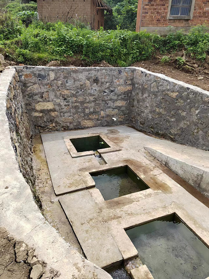 這兩口老水井均修建于上世紀六十年代,由于年久失修,泥沙充填,井邊雜草叢生,漸變荒井。今年8月,為助推鄉(xiāng)村振興,履行企業(yè)的社會責任,萬鵬建材相關(guān)人員對現(xiàn)場進行了查看,和村支兩委負責人共同討論研究,決定對老舊水井實施翻新改造修復,把水井按照挑水池、洗菜池、洗衣池等不同類別分類,并對翻新井口加以美化,使老水井煥然一新,既改善了新農(nóng)村面貌,又大大方便了周邊村民的生產(chǎn)生活用水。